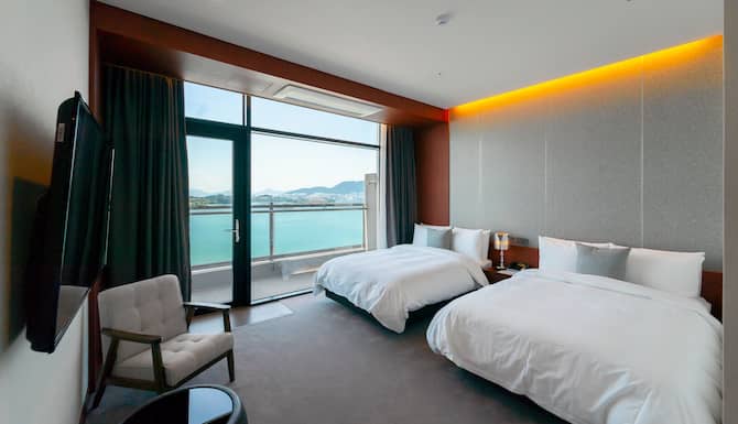 커튼 쳤을 때 모습도 보여드려야 될 것 같아서 닫고 하나 찍어봤어요 ㅎㅎ 여수리조트 중 가장 넓은 객실 사이즈를 가지고 있어 아늑한 느낌으로 하룻밤을 보낼 수 있는 객실 모습이기도 합니다.난방도 잘되고 추운줄 모르고 따뜻하게 지냈습니다.컴퓨터에 올리거나 사무실 일이 있을 때 사용하기 쉬웠던 객실 내 책상의 모습입니다.와이파이도 빵빵해서 노트북으로 웹서핑도 하면서 지냈어요.벽쪽에 큰 TV가 있어서 월드컵 축구도 보면서 따뜻한 객실에서 호캉스하며 하룻밤 즐겁게 보낸 곳이기도 하네요.발코니가 있는 객실이라 이렇게 아름다운 여수 바다를 바라볼 수 있어 국내 리조트 추천 명소로 굿입니다.객실을 정할 때 일출 풍경 쪽과 일몰 풍경 쪽을 선택할 수 있습니다.이 객실은 일출을 볼 수 있는 오션뷰라고 생각하시면 됩니다.발코니에서 찍어본 패밀리 트윈룸 모습인데 오른쪽에 침대가 2개 있고 정면에 옷걸이가 있고 출입구 쪽에 가구와 욕실이 있는 구조라고 보시면 됩니다.가구가 있는 쪽에 커피포트가 있고 서랍에 웰컴커피와 차가 있습니다.다기가 있는 곳에 세면도구도 같이 들어있는데 치약 칫솔 등이 있으니 욕실에 꺼내서 사용하시면 됩니다. (웃음)냉장고에는 생수병 2개가 있어 무료로 제공하고 있으니 드시면 됩니다.여수리조트 JCS 객실 욕실 겸 화장실 모습인데 정면에 세면대가 있고 왼쪽에 개폐식 화장실과 샤워실이 있습니다. (웃음)샤워실에는 기본 어메니티 샴푸, 린스, 바디워시가 있습니다.화장실 모습인데 벽쪽에 비데 리모컨이 있어 대/소버튼을 눌러 이용하실 수 있습니다.그래도 부족한 부분이 있을 것 같아 여수리조트 추천 JCS 패밀리 트윈룸 객실 영상으로 찍어봤습니다.참고해보시면 되겠네요.침대도 푹 자서 힐링타임 보내면서 푹 쉬어간 여수 숙소이기도 했어요.침대도 넓고 공간도 넓기 때문에 대접을 받는 듯한 느낌의 숙소라고 생각하시면 됩니다.알고 보니 최고의 침구류 중 하나인 구스 침구류나 에이스 침대였다고 합니다.여수 숙소 추천 JCS 객실에서 바라본 일출 모습입니다.아름다운 일출과 바다를 바라보며 일어나는 그 느낌, 경험해 보지 않으면 알 수 없는 일이기도 합니다. 참고로 여기 호텔 객실은 전부 오션뷰 객실입니다. (웃음)객실에서 바라본 일출 방면 여수 앞바다의 모습.왼쪽부터 프리미엄 노래방 1시간 무료이용권, 수영장 이용권, 조식권, 그리고 객실 열쇠 모습입니다.왼쪽부터 프리미엄 노래방 1시간 무료이용권, 수영장 이용권, 조식권, 그리고 객실 열쇠 모습입니다.한국의 숙박시설을 추천하는 여수리조트 12층의 프리모 영업시간은 아침:07:00~10:00, 디너:15:00~22:00, 룸서비스는 17:00~22:00, 해피아워 15:00~19:00, 생맥주&과일에이드 50% 할인 그림같은 일몰을 볼 수 있는 곳이지만 객실이 일출룸이라면 꼭 올라가봐야 할 일몰 풍경이기도 합니다.그리고 여수시 안쪽 뷰라 보는 재미도 있고 좋았던 풍경이기도 하네요.레스토랑 오른쪽으로 나가면 밖에서 뷰를 볼 수 있는데 지는 석양을 한 장 찍어봤어요.국내 호텔 중 일몰과 일출을 볼 수 있는 곳도 드물기 때문에 하룻밤 여수에서 숙박한다면 이곳 여수호텔에 숙박하면서 일몰과 일출 풍경을 즐겨보는 것도 좋을 것입니다.다음날 찍어본 여수 시내뷰 모습이네요.위 일몰뷰와 시티뷰를 동시에 볼 수 있는 호텔 뒷배경의 모습이기도 합니다.아침을 먹기 위해 다시 찾은 여수호텔 프리모 레스토랑에서 “ㄷ”자 형태로 준비된 뷔페 음식을 하나하나 골라 먹을 수 있도록 만들어진 모습인데, 들어가면 객실 체크를 하고 자리를 배정받아 본격적으로 아침 식사를 하게 됩니다.이곳에서 계란을 주문해 먹을 수 있으며 일반적인 호텔식 소시지, 팬케이크 등을 골라 먹을 수 있습니다.그리고 다른 한쪽에 만두와 새우마요, 볶음우동, 고등어구이, 불고기, 스크램블, 볶음밥이 놓여 있습니다.창가에는 빵과 치즈가 있었습니다만, 대단한 것은 꿀도 있고 맛있었습니다. 흐흐흐 예전에 터키쪽 호텔에서 자주 봤던 꿀이었는데 여기서 반갑네요. (웃음)다른 한쪽에는 한식으로 만들어졌고 바 쪽에 샐러드와 시리얼이 진열되어 있습니다.양식, 한식 등으로 만들어진 뷔페 형식의 요리이므로 누구나 배부르게 아침을 먹고 나갈 수 있는 여수 숙소 중 하나라고 생각하시면 됩니다.각종 과일과 채소 등이 놓여 있는 모습이지만, 건강 주스도 있어 한 잔 마시면서 힐링된 아침 식사이기도 하네요.음료도 물, 오렌지주스, 애플주스, 포도주스, 우유가 있고 과일도 파인애플, 키위, 사과, 귤 등이 있습니다.사진으로 다 찍기에는 너무 많아서 영상으로 찍어봤네요.조식도 많이 나오고 맛있는 게 많아서 조식도 잘 먹고 나온 날이기도 했어요.객실에서 바라본 이 호텔의 뜨거운 수영장의 모습입니다.온수 풀장도 있으므로 날씨도 부담 없이 즐길 수 있기 때문에, 수영복을 지참하지 않으면 안 됩니다.? 요스리조ー토을 추천하는 이유의 하나가 이런 뷰와 온수 수영장이 있기 때문입니다. (웃음)아이들과 함께 물놀이를 하면서 아름다운 여수의 바다를 바라보며 달래는 여수 숙박 JCS입니다.그것에 야외 수영장이 리뉴얼되고 신규 오픈했다
